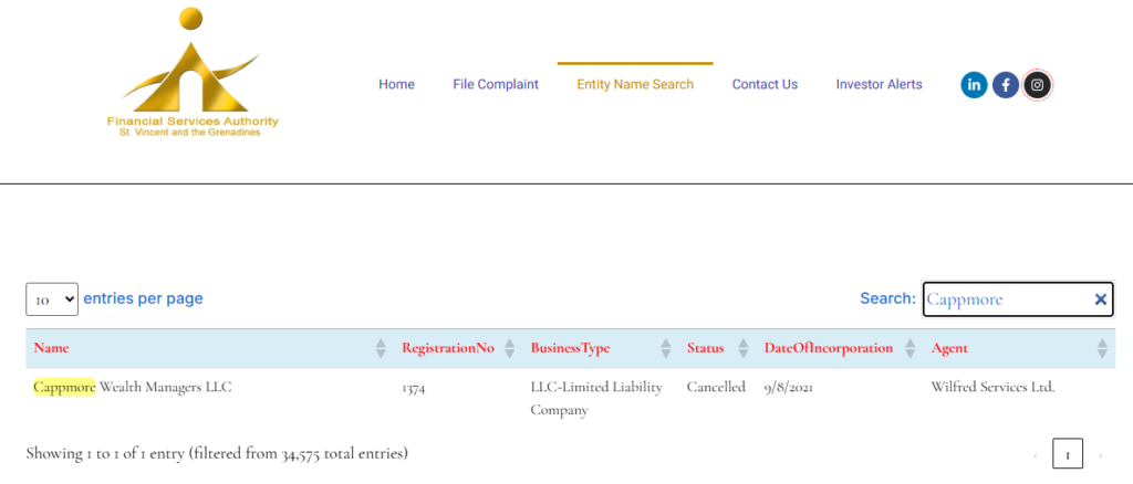 Although the company may be incorporated and registered with the Financial Services Authority (FSA) of Saint Vincent and the Grenadines, the jurisdiction does not regulate forex or CFD brokers. This means CappmoreFX operates without strict financial supervision or investor protection safeguards.