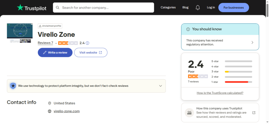 To figure out if Virello Zone is trustworthy, consider the following points:
